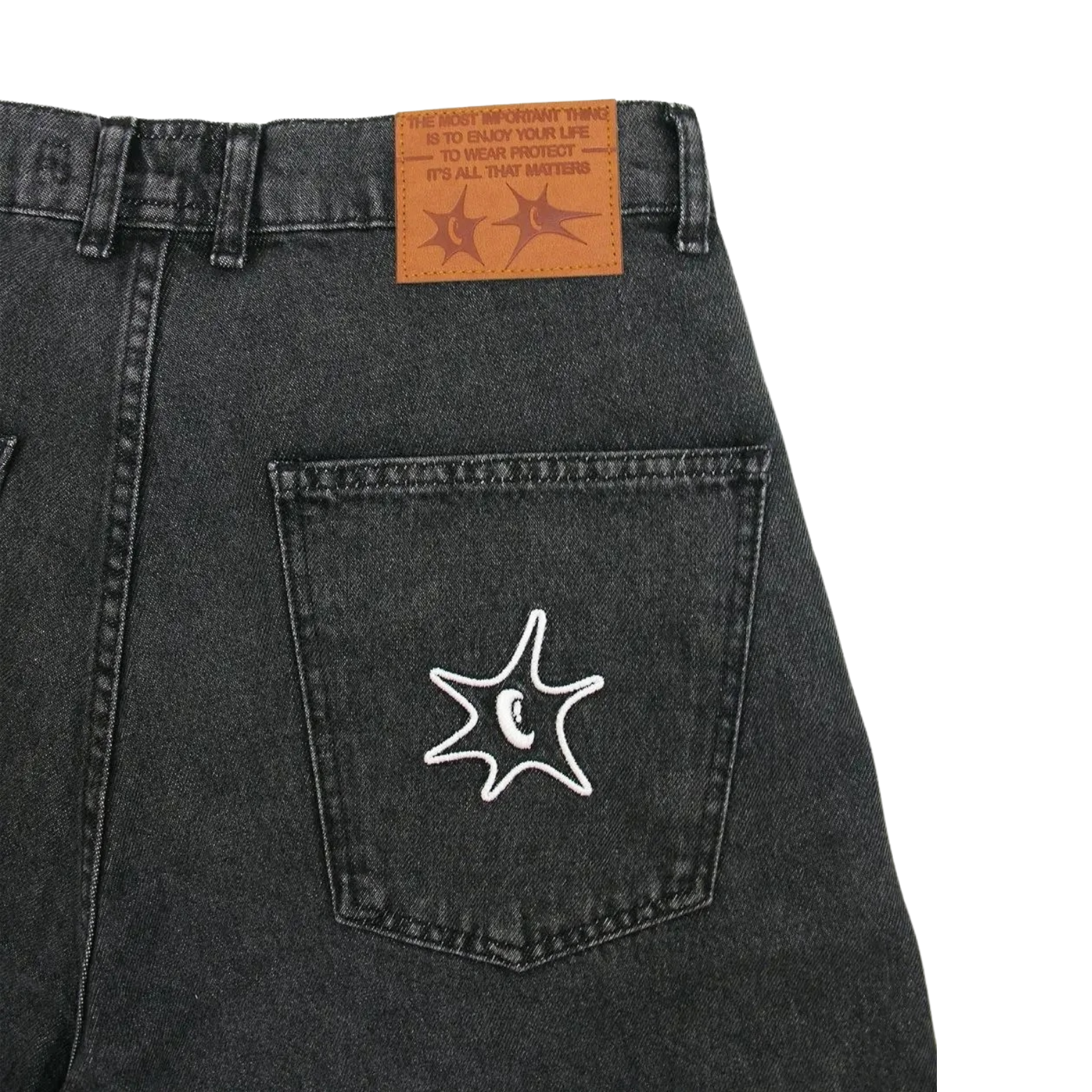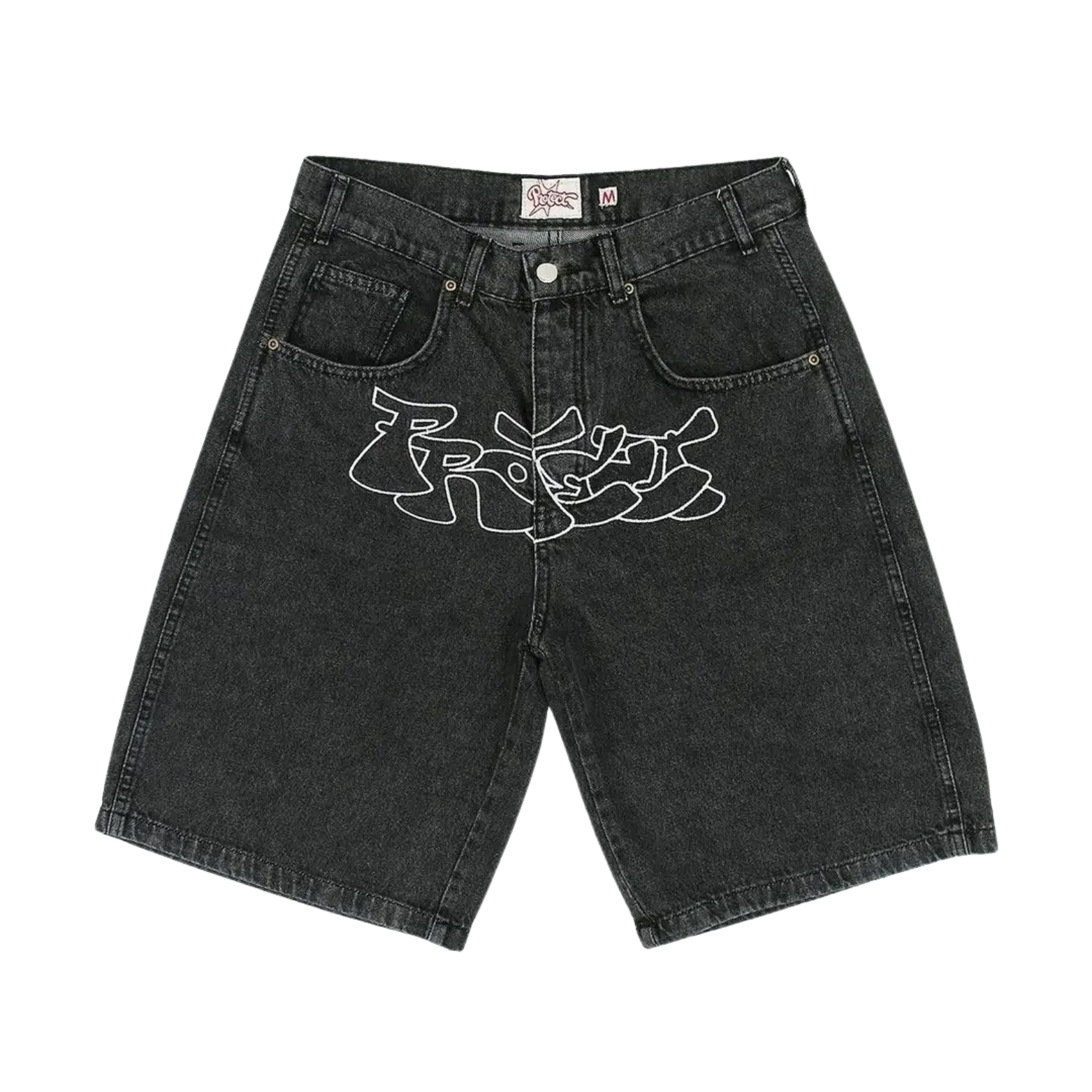 Elevate your style with 'Frosty' Graphic Jorts, made from high-quality denim for durability and comfort. The bold "Frosty" graphic adds an edgy touch, while the unique star detail on the back pocket enhances your look. Perfect for those who love to combine cool, casual vibes with standout streetwear elements.